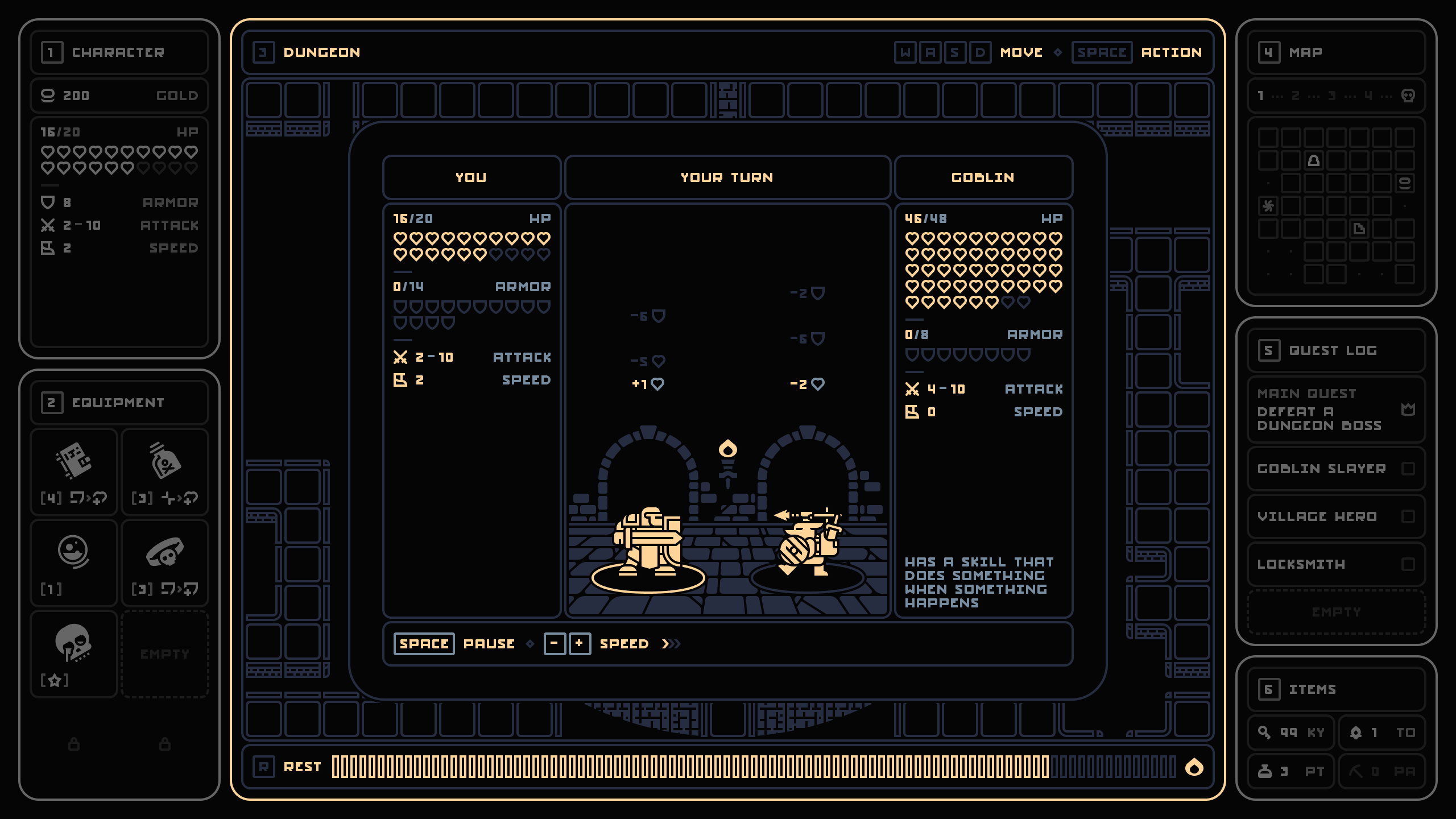 Warg venom useless on its own since it needs higher maximum attack. Same with night's tale. Not sure if it works as intended. Medicine? With every loop you get more and more of this trash in your loot table. I skip 7/10 chests. Skipping a chest could at least give something and not be a waste of a torch. Exploration beyond having a good set is punished. Same with full heal at max hp, maybe at least overheal 1? +1 max hp would seem to break the game probably, but the rescue villagers full healing when full is just ugh. First time i got a max armor villager, i was like "well thats freaking better"